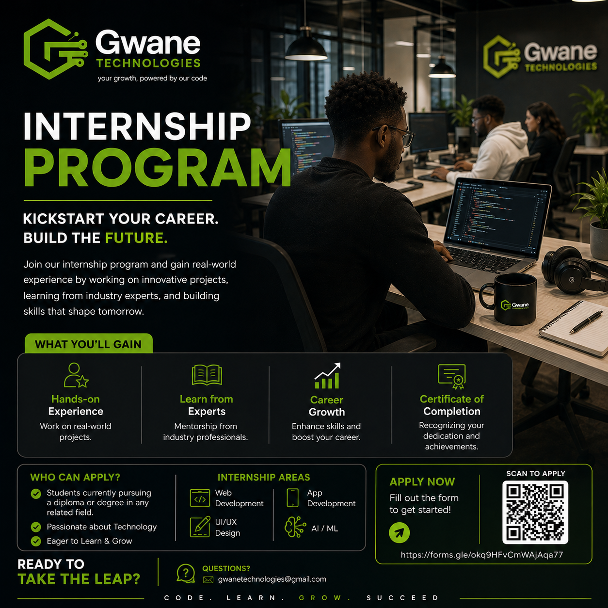 Kickstart your career. Build the future through real-world digital products, mentorship, and practical technology experience.